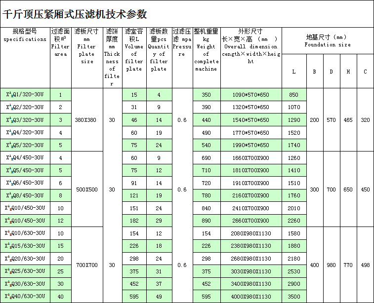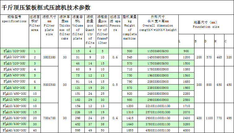 千斤頂壓緊壓濾機(jī)是采用螺旋千斤頂作為壓緊裝置,具有結(jié)構(gòu)簡(jiǎn)單、操作方便、無需電源、經(jīng)濟(jì)實(shí)用的特點(diǎn),一般用于過濾面積1~40m2的壓濾機(jī)。